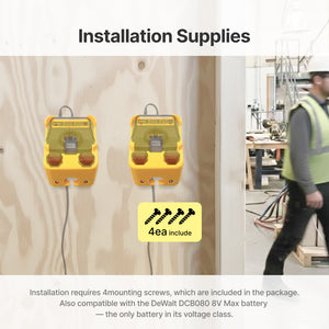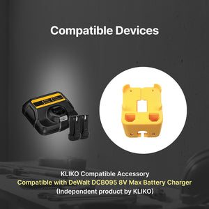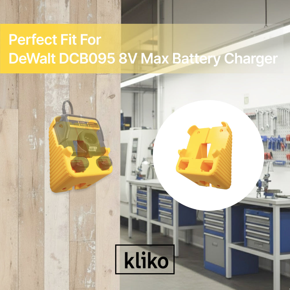 The DCB095 8V Battery Charger Wall Mount is engineered for optimal organization of your DeWalt charger and batteries. It securely holds the DCB095 charger and two DCB080 batteries, ensuring they are always within reach.