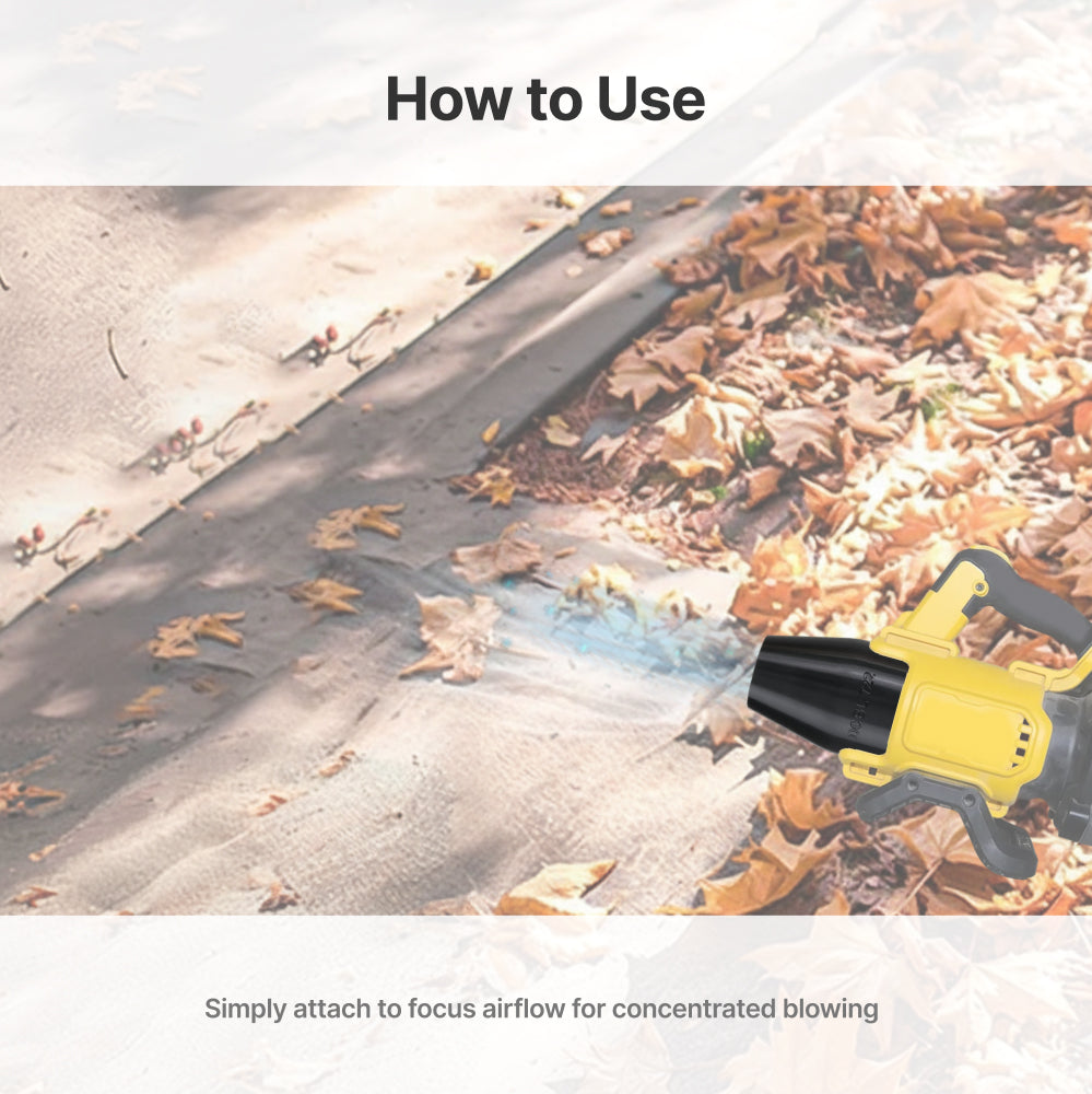 Installing the DCBL722 nozzle is straightforward. Simply attach it to your blower's existing nozzle mount for immediate use. The design ensures a secure fit, allowing for efficient operation without the need for additional tools.