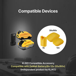- Compatible with 12V and 20V Dewalt batteries