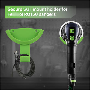This holder is specifically designed for the Festool RO150 sander, but it can also accommodate other 150 mm sanders with a hook for hanging power cables.