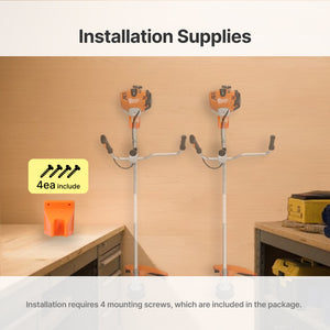 Once installed, the mount provides a stable and reliable storage solution for your brushcutters, keeping them out of the way yet easily accessible.