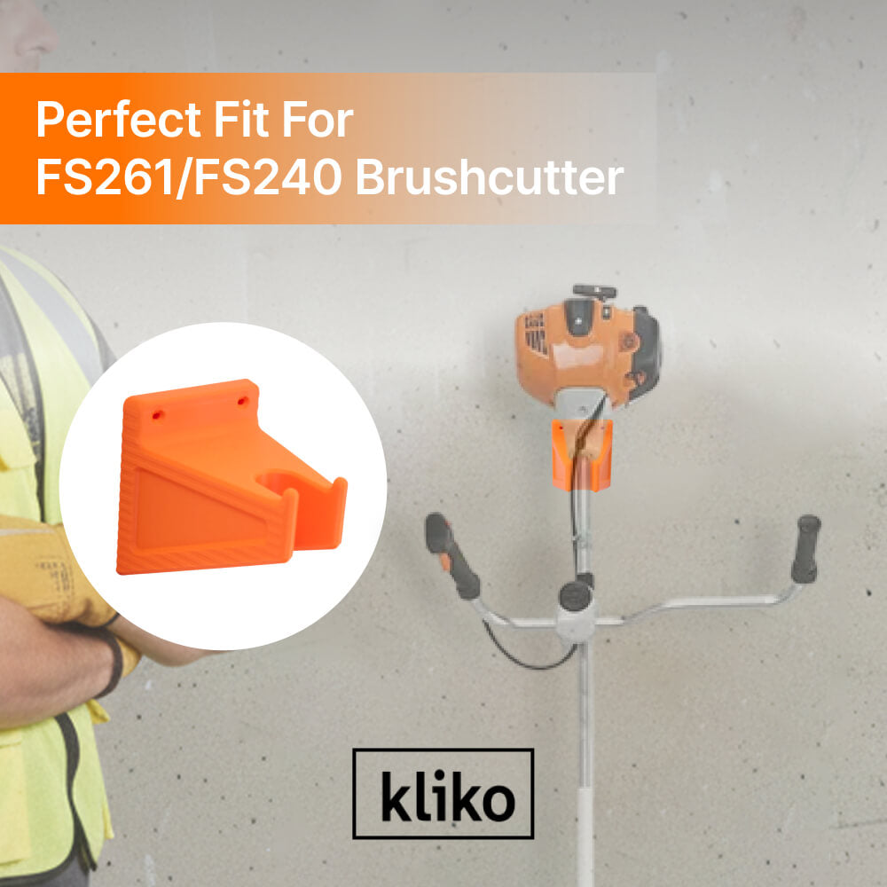 This sturdy wall mount is designed specifically for the Stihl FS261 and FS240 brushcutters, ensuring a secure and space-saving storage solution. It keeps your equipment easily accessible while minimizing clutter in your workspace.
