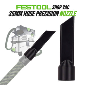The Festool Shop Vac Crevice Nozzle is designed for precision cleaning with a 35mm hose connection. This nozzle is perfect for reaching tight spaces and ensuring efficient dust extraction.