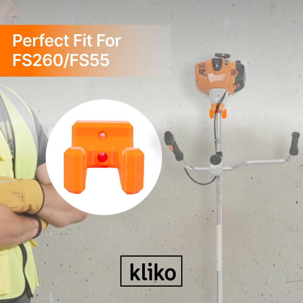 Sturdy Construction: This holder is built to last, providing a secure solution for your garden tools. Its robust design ensures that it can handle the weight of heavy tools like the Stihl FS260 and FS55.