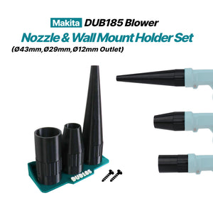 This 3-piece round blower nozzle set is designed specifically for the Makita DUB185Z blower, providing versatile airflow control for precision cleaning, general dust removal, and wider surface coverage. The round outlet design ensures smooth, stable, and consistent air delivery. The included wall-mounted holder keeps all nozzles organized and easily accessible, helping maintain a clean and efficient workspace.