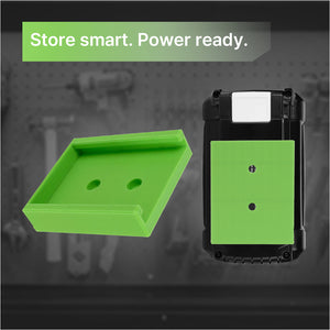 This battery storage holder is specifically designed for Ryobi 40V batteries, ensuring a precise and secure fit.